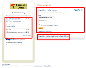 It's also from this page that you can eiter login to a PayPal account or use a credit card to pay. If you don't have a PayPal account you'll have to enter in your billing and shipping addresses and email address.